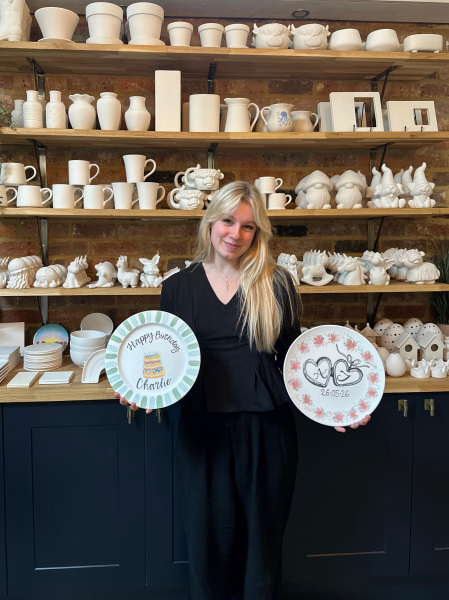 Our brand new personalised plate service lets you choose a beautiful, one-of-a-kind keepsake for birthdays, weddings and other special celebrations. Simply choose your favourite design, select the colours you’d like, and add your personalised details such as names, dates or messages at the checkout. Our artist will then hand-personalise your plate to create a truly unique piece. When ordering, you can also select a convenient collection date and pick up your finished plate from our pottery studio at Frosts in Milton Keynes. Whether it’s a birthday surprise, a wedding gift or a meaningful keepsake, our personalised plates are a special way to celebrate life’s memorable moments.